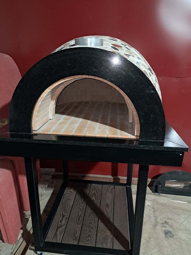 Ahju suu ümber on poleeritud mustast graniidist Nero Assoluto kaar ning esimesed karniisid. Ahi asub metallraamil, mille põhi on täiendavalt isoleeritud soojuse paremaks hoidmiseks. All on rattad, mis võimaldavad ahju liigutada.